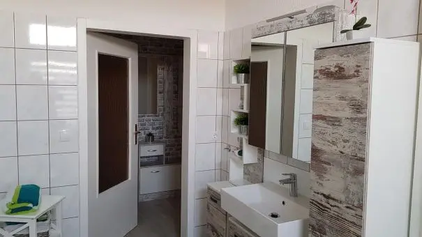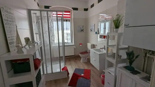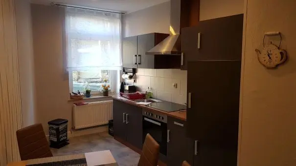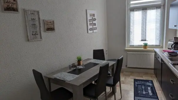 Das Herzstück der Wohnung ist die großzügig gestaltete und komplett eingerichtete Einbauküche. Hier finden Sie alles, was Sie für die Selbstversorgung benötigen, sowie gemütliche Sitzgelegenheiten, die nicht nur zum Essen, sondern auch zum gemeinsamen Verweilen einladen. Das freundliche Badezimmer ist sowohl mit einer Badewanne als auch mit einer Dusche ausgestattet – perfekt, um den Tag entspannt ausklingen zu lassen.